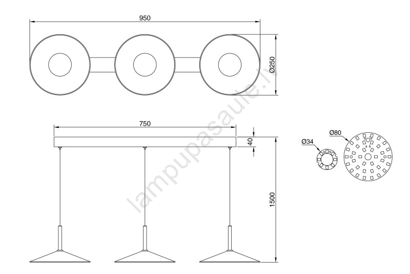 Globo 15635S-3 - LED lustra uz kabeļa LAMPONE LED/24W/230V 4000K melna | Lampupasaule