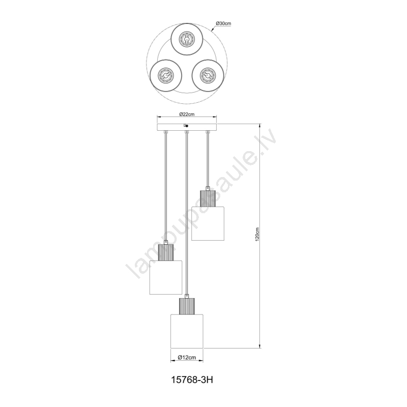 Globo 15768-3H - ALEIDIS pakaramā lustra uz troses, 3xE27/25W/230V, Ø 30 cm | Lampupasaule