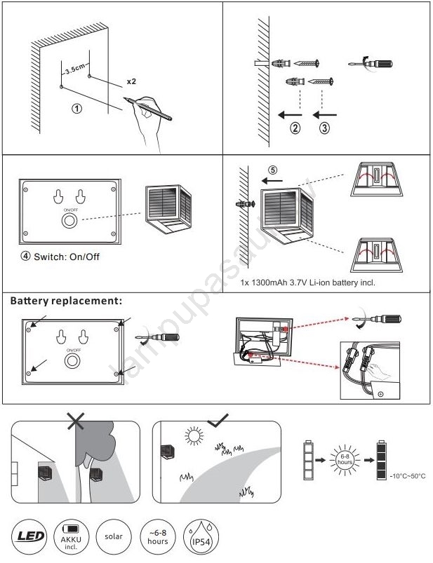 Globo 36495 - LED Saules enerģijas lampa SOLAR LED/6W/3,2V 3000K IP54 | Lampupasaule