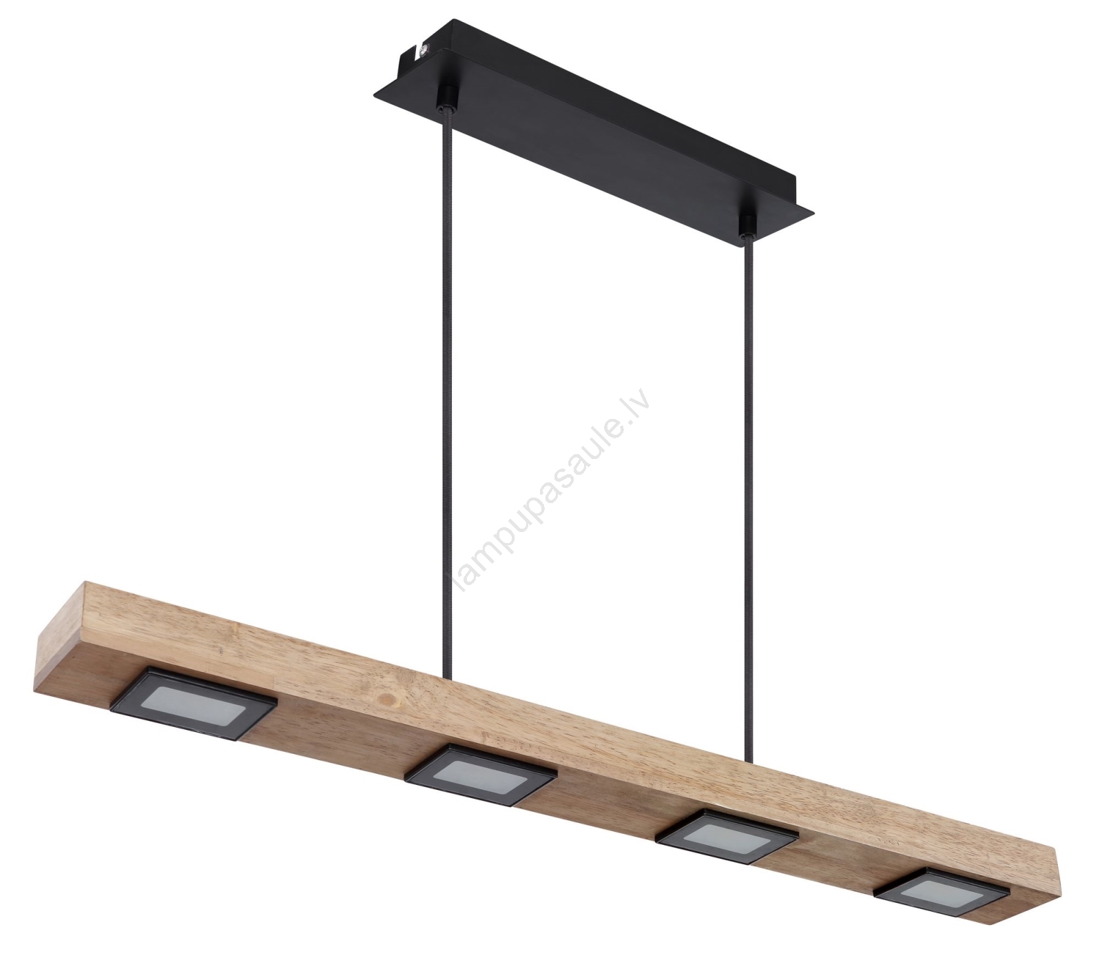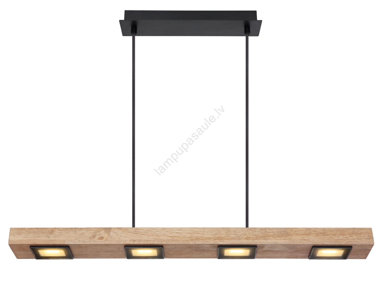 • Četri punktveida gaismekļi ar satīna stiklu, iemontēti stilīgā koka panelī.
