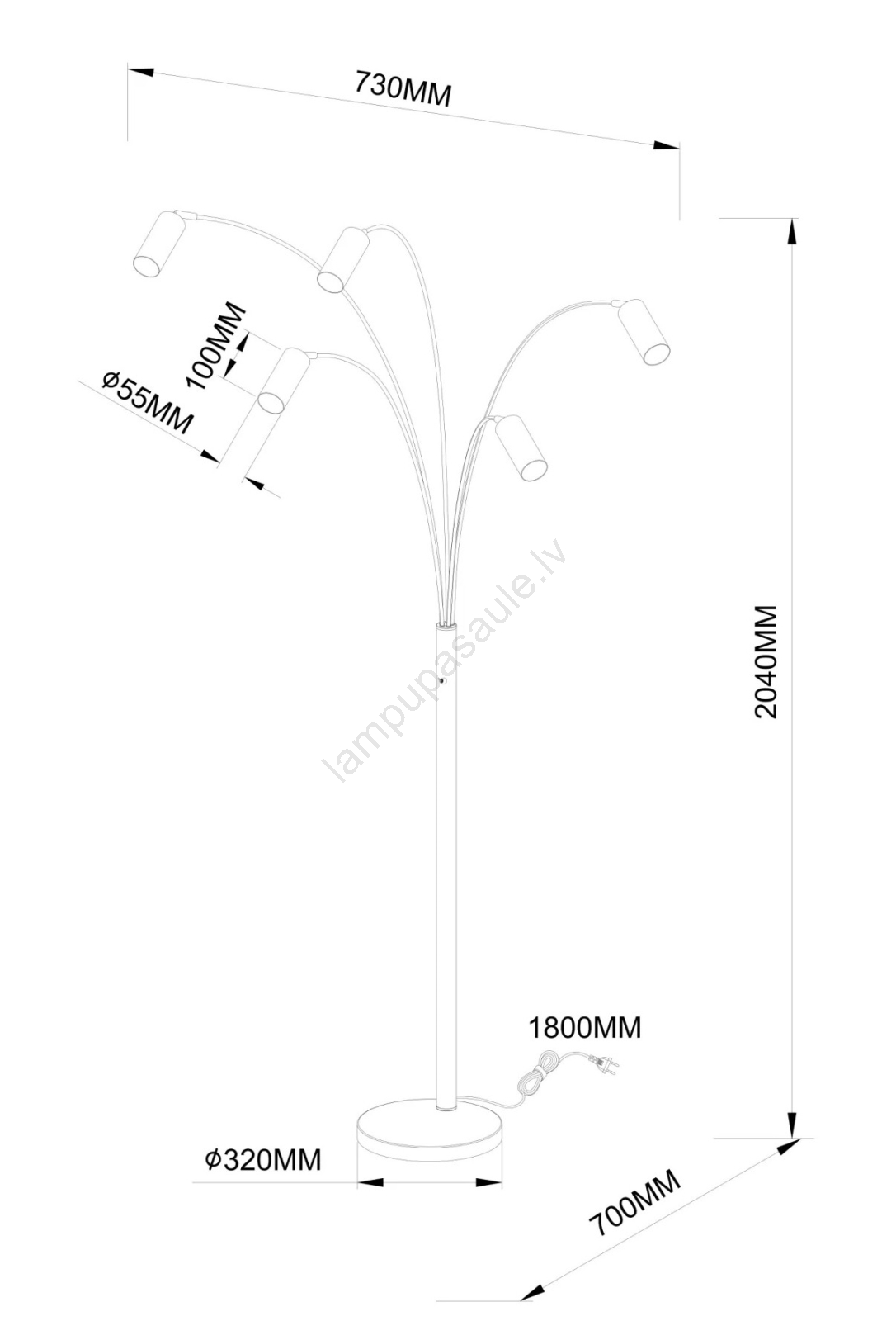 • Globo - grīdas lampa 5xGU10/35W/230V