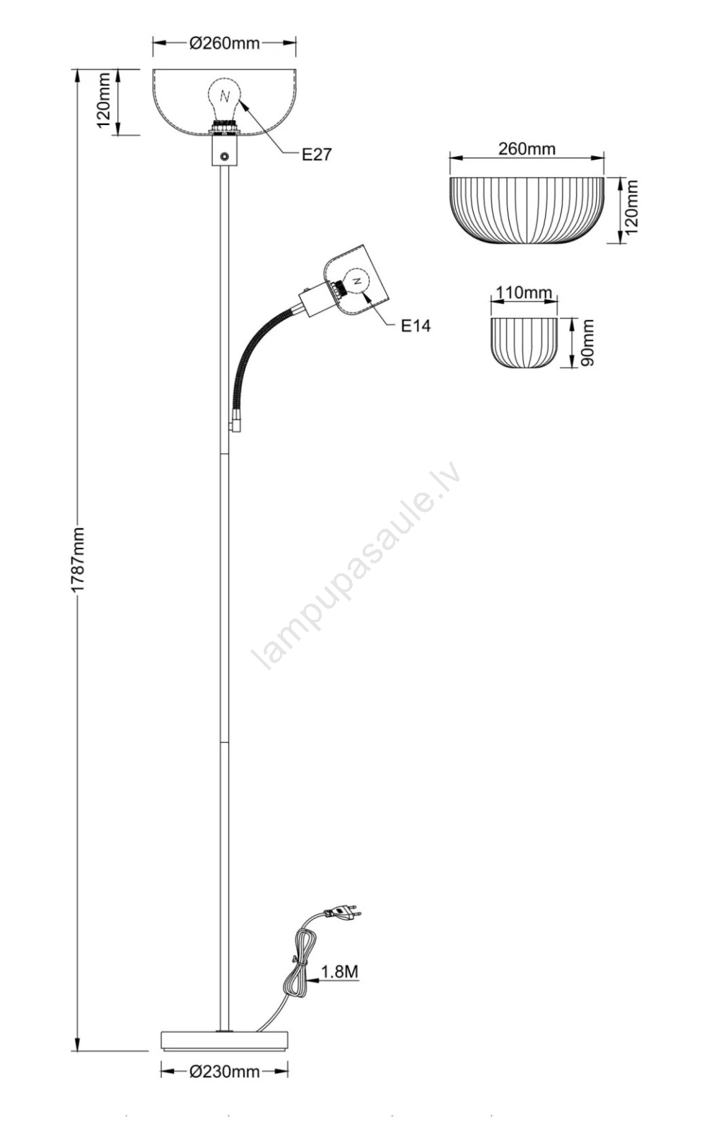 • Globo - Grīdas lampa 1xE27/40W/230V + 1xE14/25W