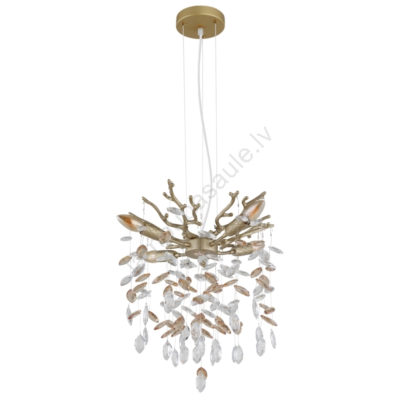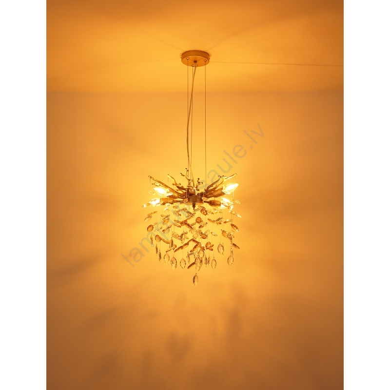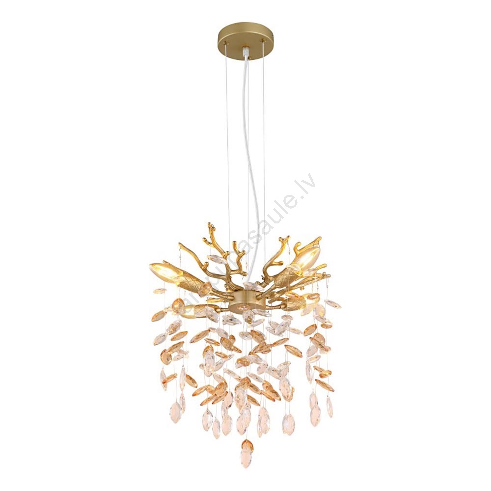 Globo - Lustra uz troses 4xE14/40W/230V zelta krāsas izceļas ar jauku un funkcionālu dizainu.  Spuldze ar E14 cokolu irpiemērota lampai. Šeit, varat iegādāties citas spuldzes par izdevīgām cenām. Tā būs interesants jūsu mājas papildinājums.