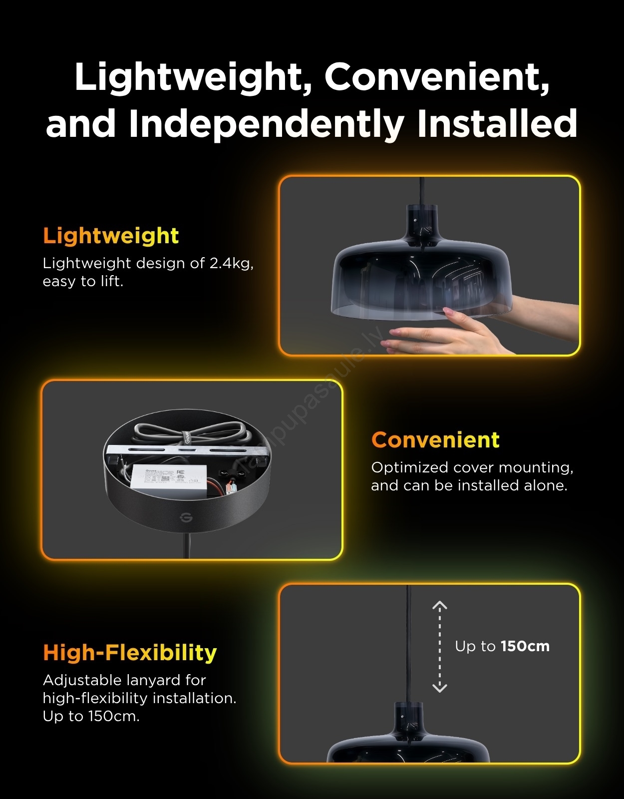 • Mūsdienīgs lustras gaismeklis ar RGBICWW tehnoloģiju — nodrošina 16 miljonus krāsu un pilnībā regulējamu baltu gaismu no silta līdz aukstam.