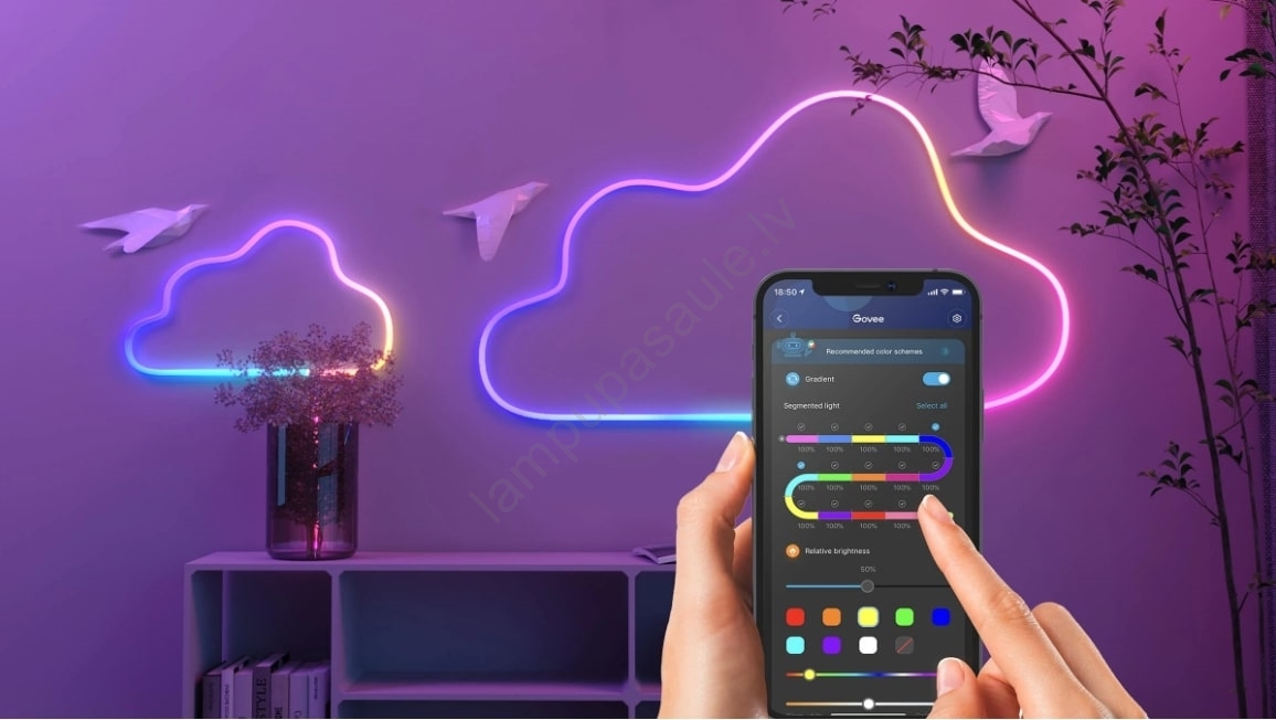 • Pielāgojiet katra lentes segmenta krāsu pēc savas gaumes un radiet unikālu apgaismojumu, kas precīzi atbilst jūsu vēlmēm, stilam un noskaņojumam.