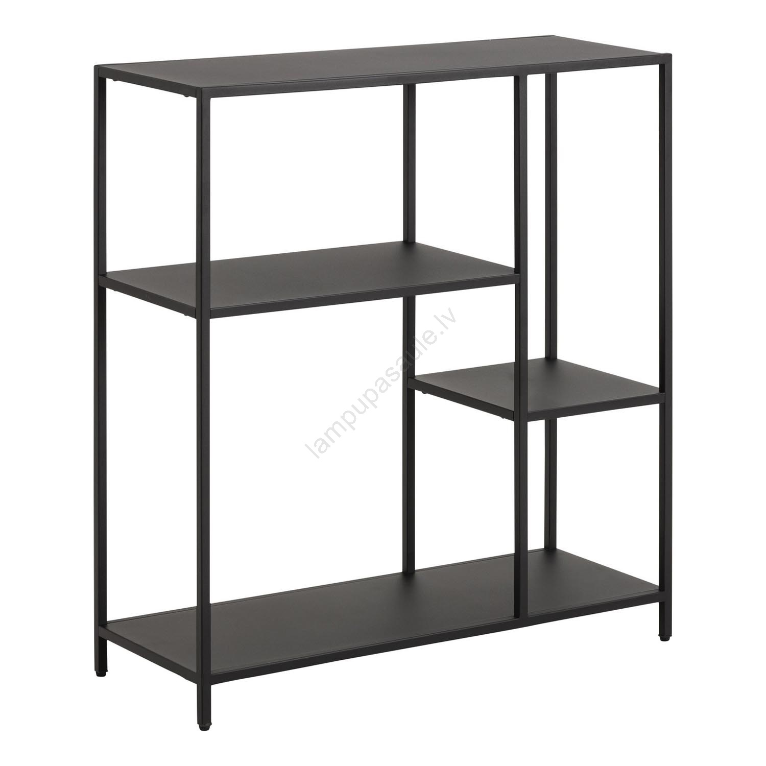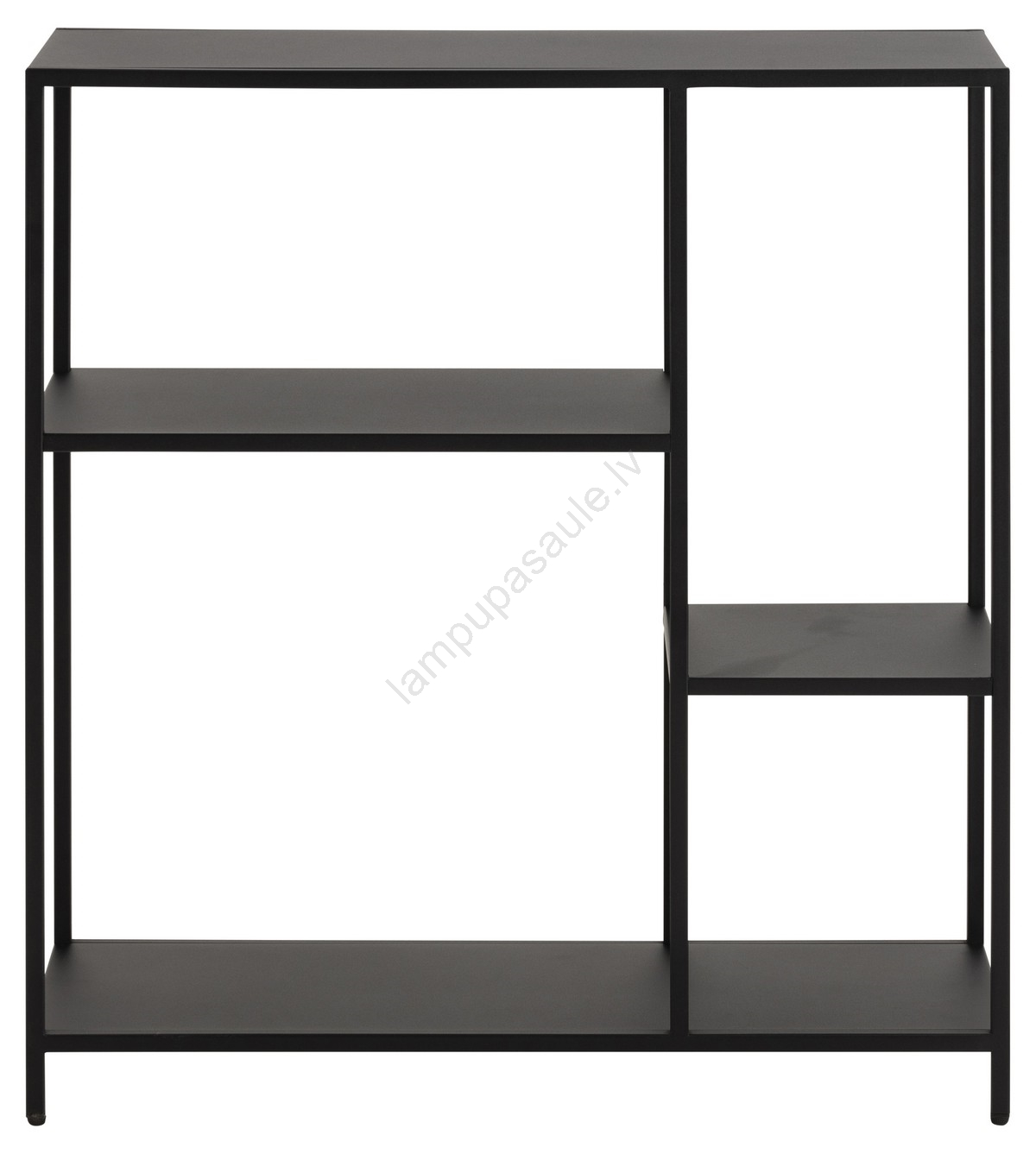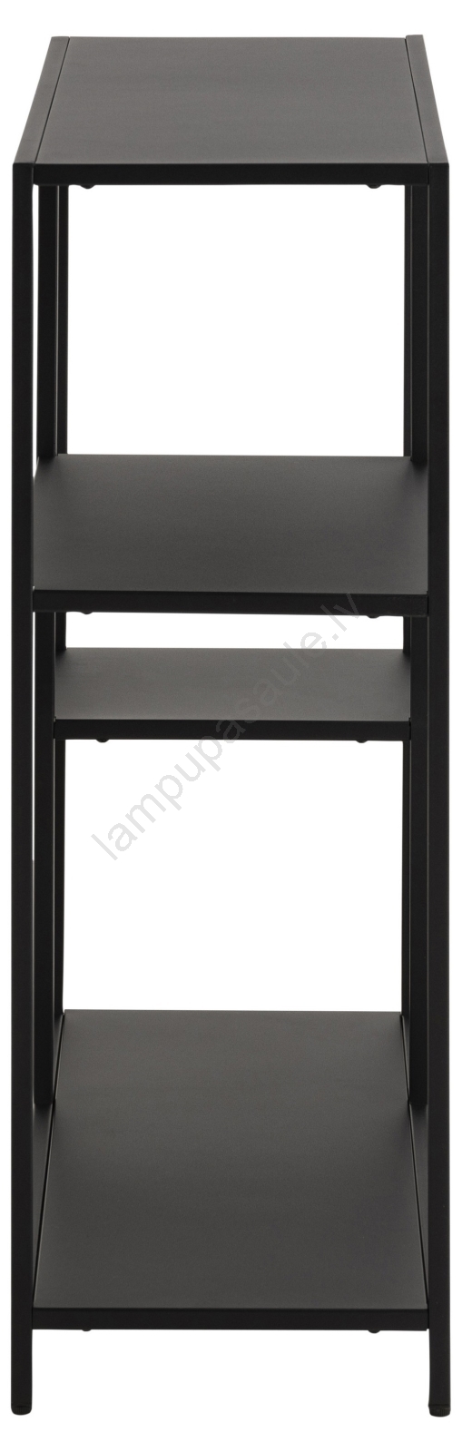• Rāmis, 3 plaukti un pamatne no matētas melnas tērauda ar rupju pulvera pārklājumu un asimetriskiem akcentiem.