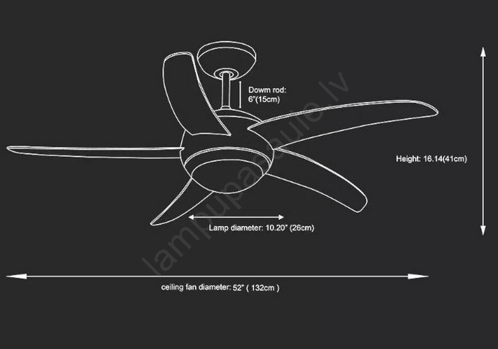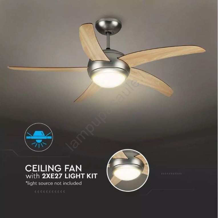 • Griestu ventilators ar apgaismojumu, kas darbojas ar tālvadības pulti.