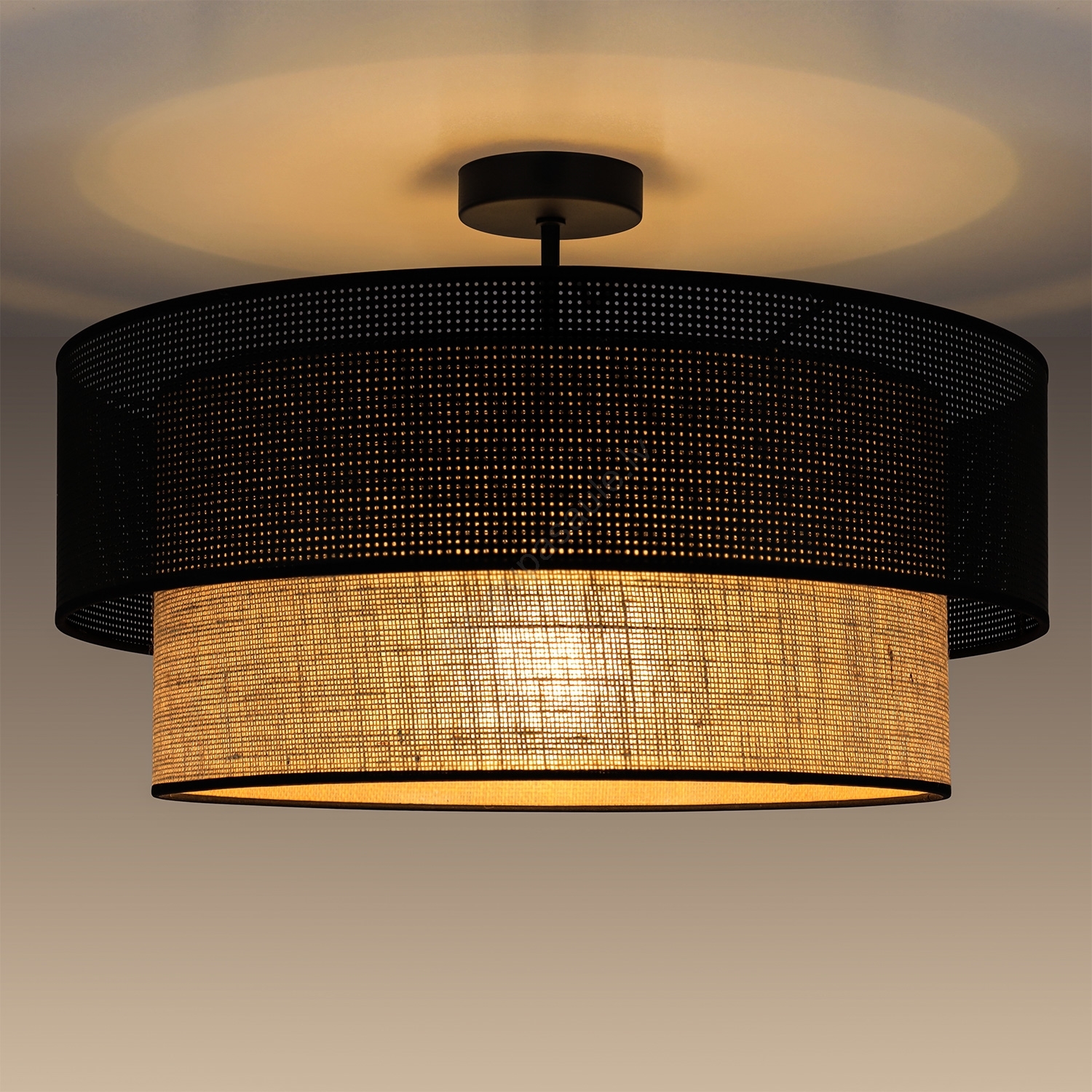 • Piestiprināma griestu lampa BORHO 1xE27/60W/230V Ø 50 cm melna/džuta