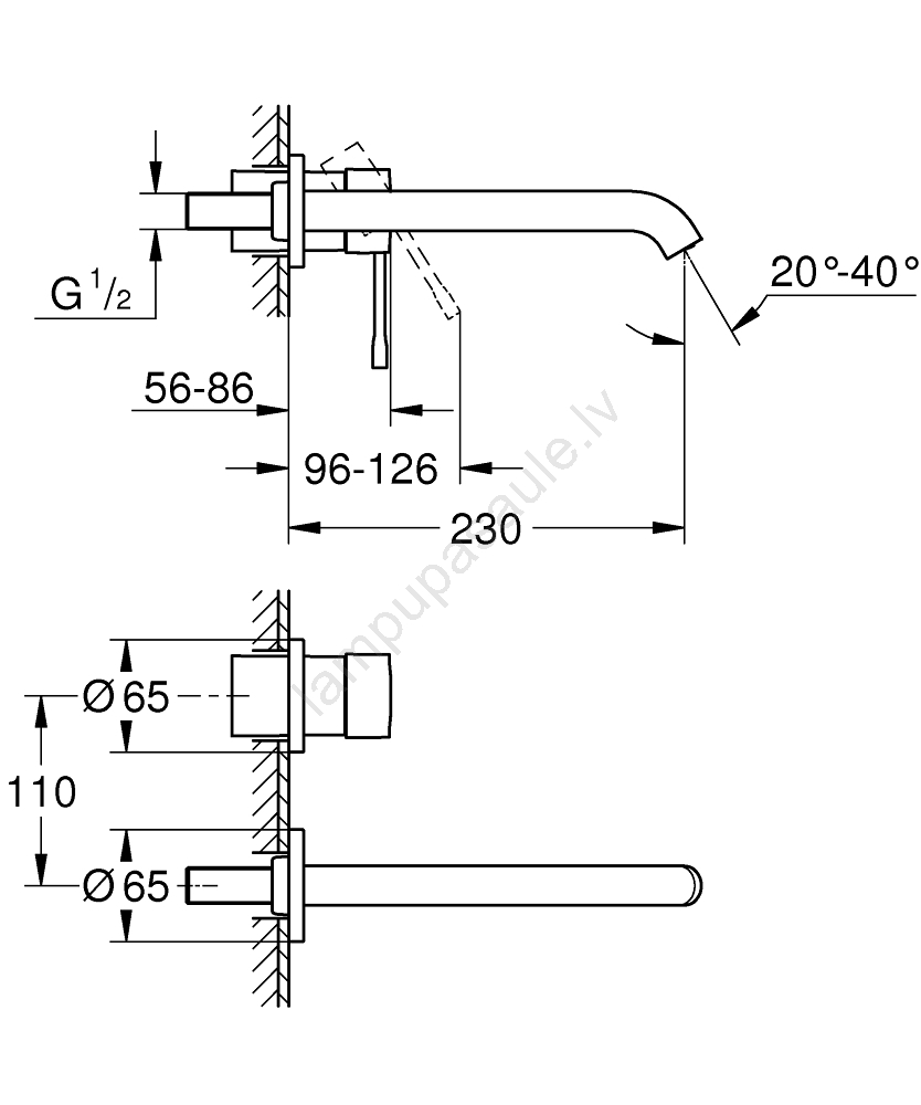 • Nepieciešams GROHE iebūvējamais korpuss (pārdots atsevišķi) pilnai uzstādīšanai.