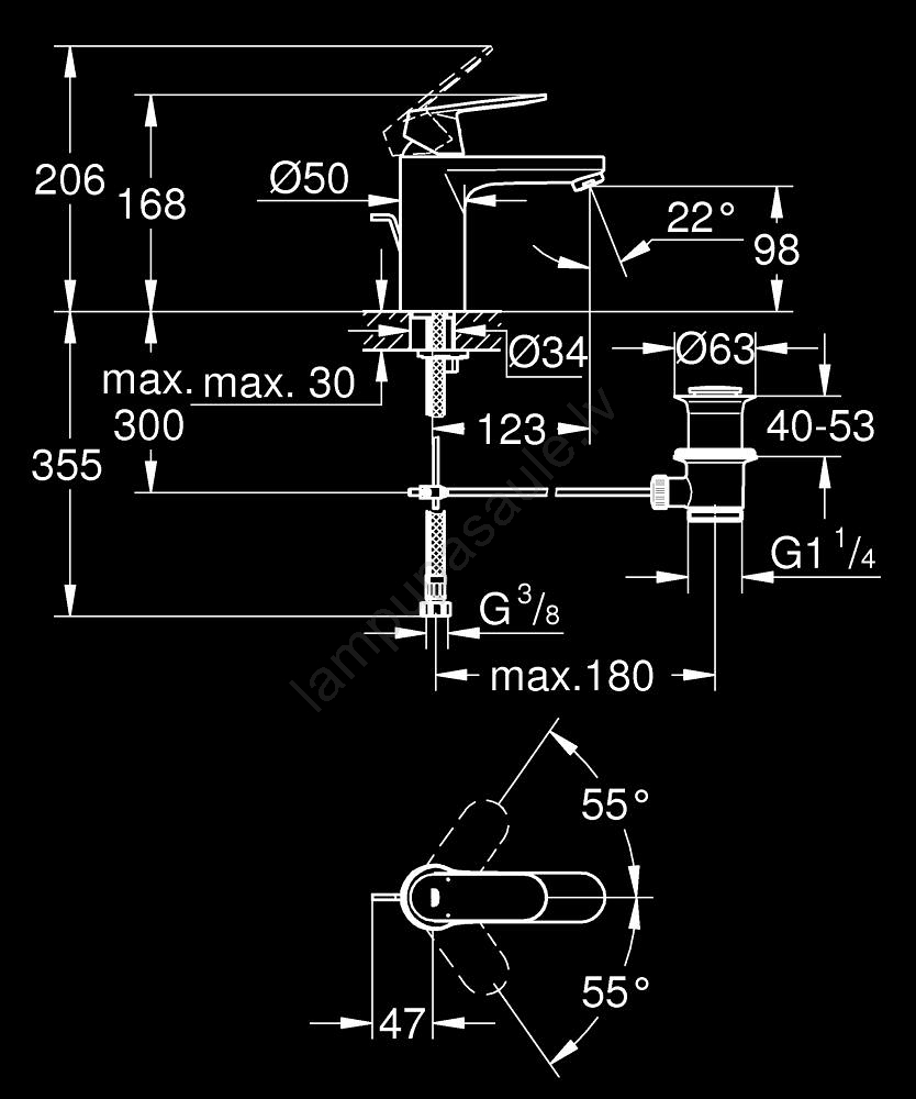 • GROHE Water Saving tehnoloģija samazina ūdens patēriņu līdz 50 %, saglabājot pilnu plūsmu.