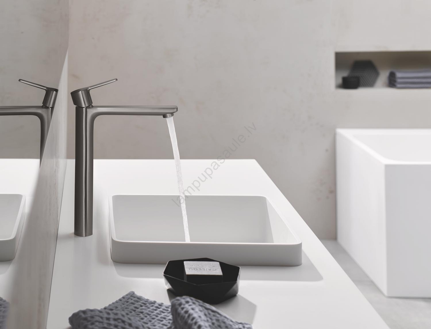 • Mūsdienīgs dizains ar sukotu cietā grafīta apdari (Brushed Hard Graphite), kas piešķir stilīgu izskatu jūsu vannas istabai.
