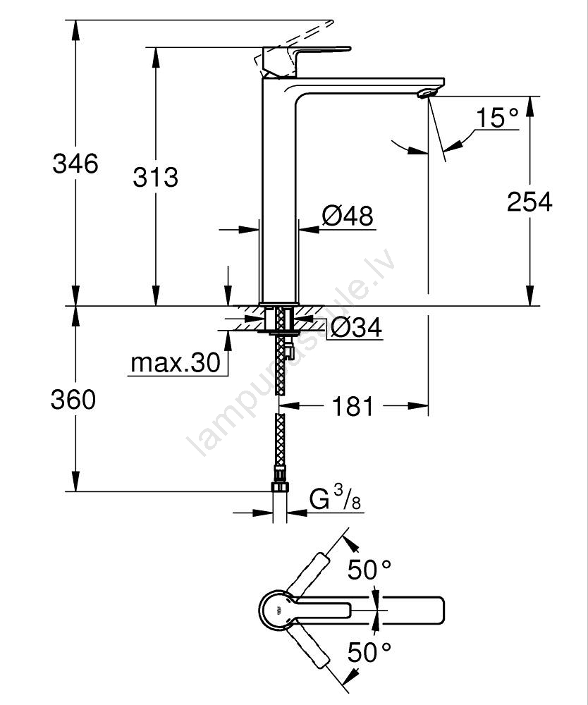 • Elegants GROHE Lineare vienas sviras izlietnes jaucējkrāns ar īpaši augstu iztecēšanas augstumu, ideāls brīvi stāvošām izlietnēm.
