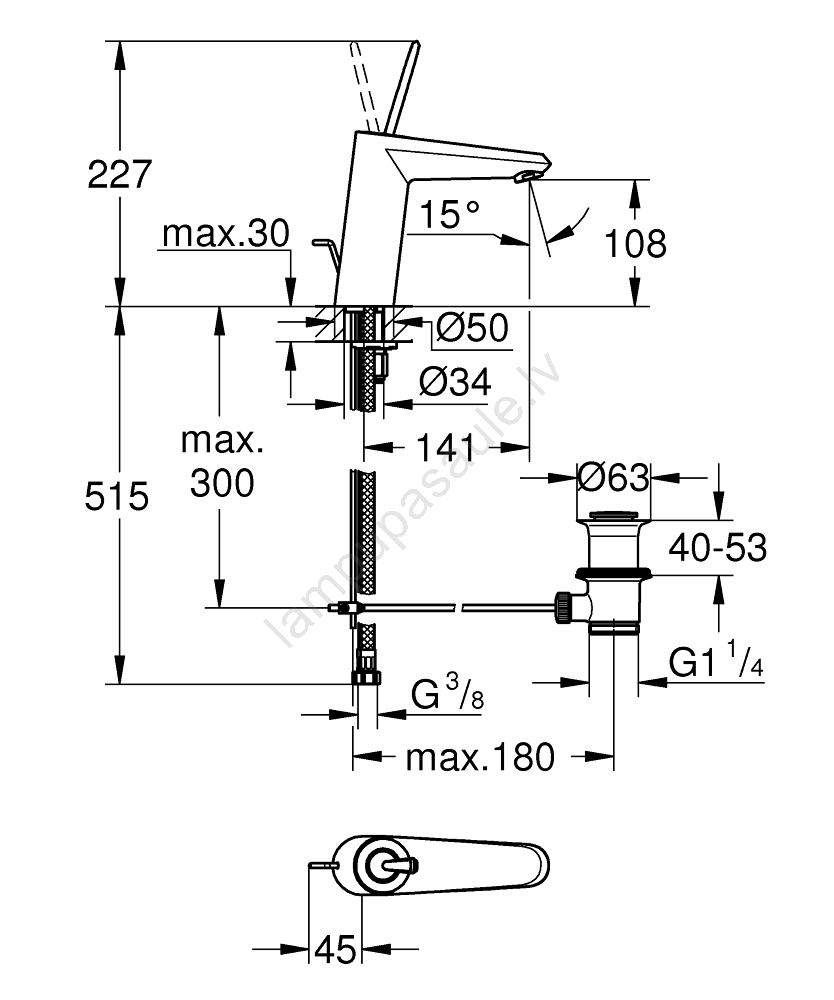 • Metāla rokturis ar joystick tipa GROHE FeatherControl kārtridžu nodrošina plūdenu vadību.