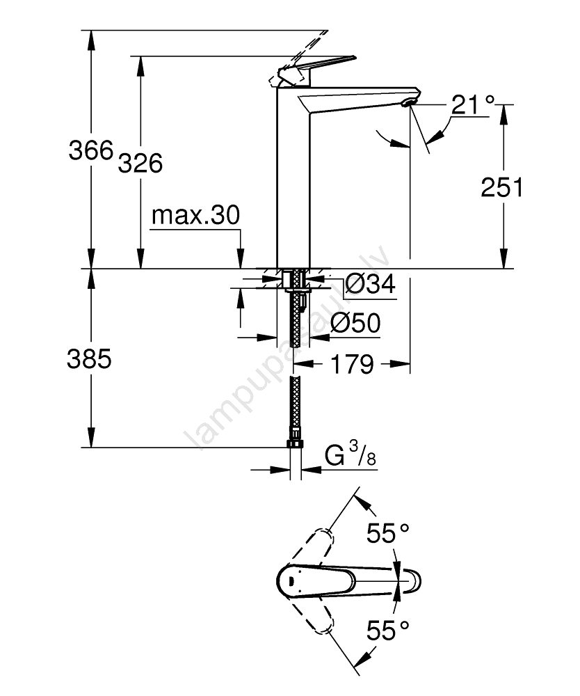 • Elegants XL izmēra sviras izlietnes jaucējkrāns brīvstāvošām izlietnēm.