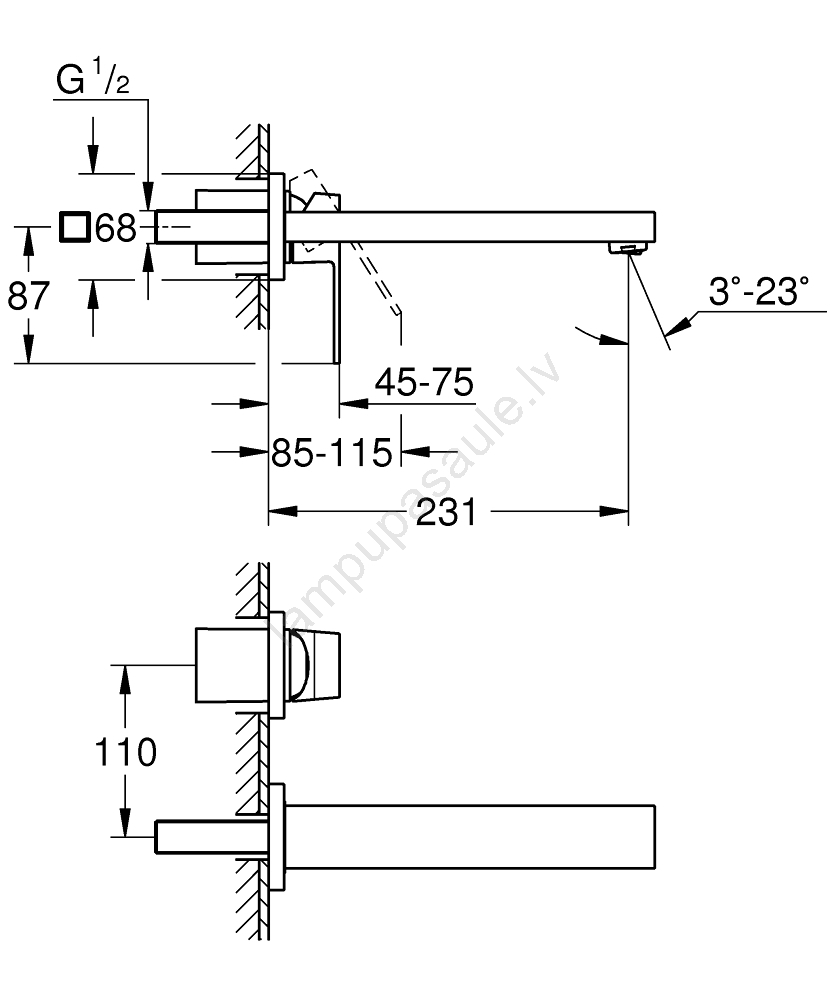 • Attālums starp caurumu centriem 110 mm standarta uzstādīšanai.