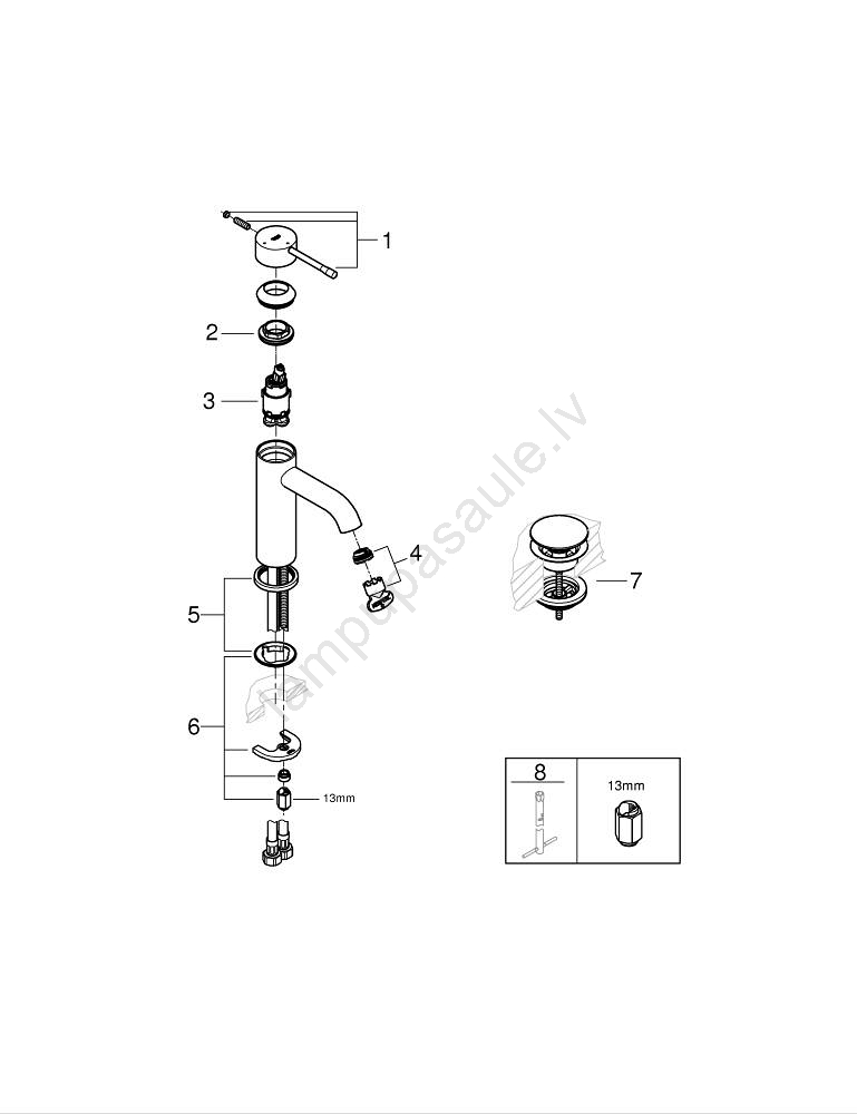 GROHE 23797001 - Izlietnes jaucējkrāns ESSENCE, izmērs S, spīdīgs hroms | Lampupasaule