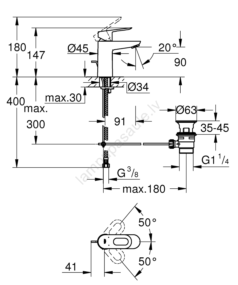 • GROHE Water Saving tehnoloģija samazina ūdens patēriņu līdz 5 l/min pie 3 bāriem.
