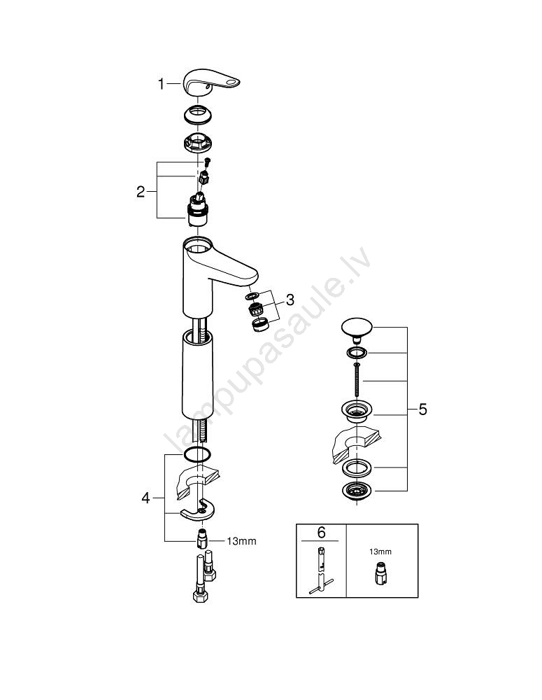 • GROHE Long-Life 28 mm keramikas kasete vienmērīgai un precīzai ūdens daudzuma un temperatūras vadībai.
