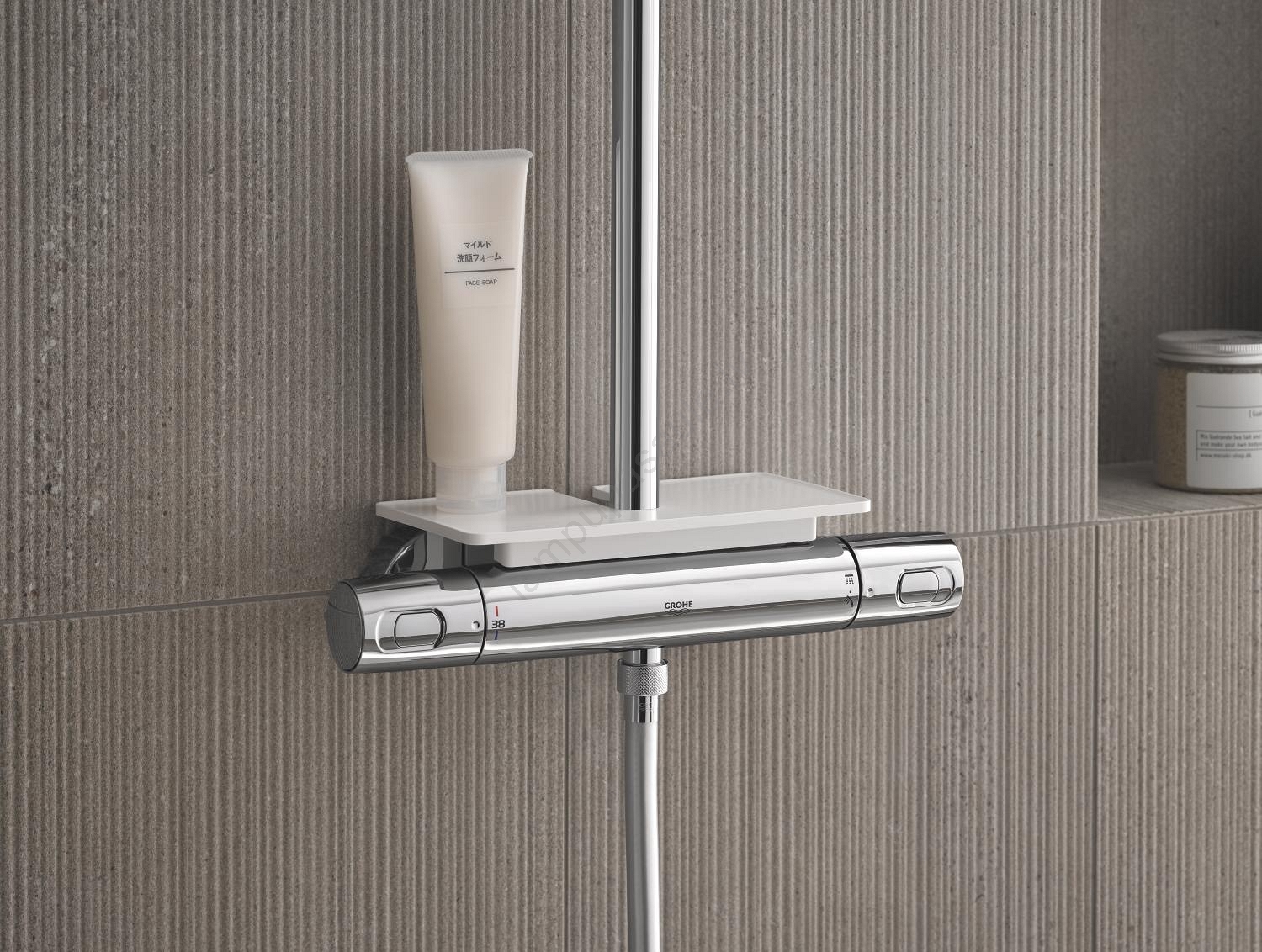 • GROHE EasyReach nodalījums ērtai dušas piederumu uzglabāšanai.