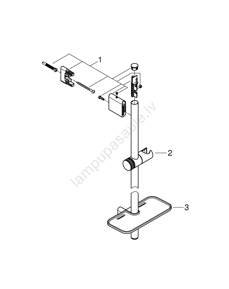 • Dušas stienis 900 mm garumā ar sienas metāla turētājiem.