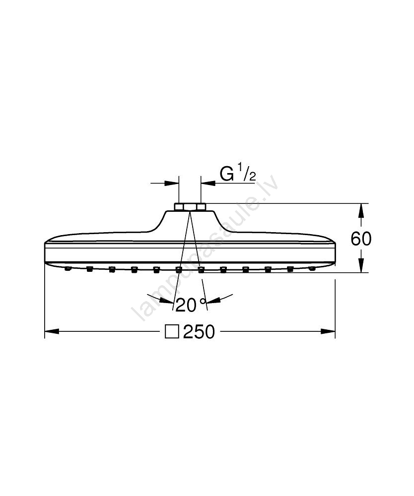 • Plaša dušas galva izmērā 250 x 250 mm, kas nodrošina luksusa dušas baudījumu.