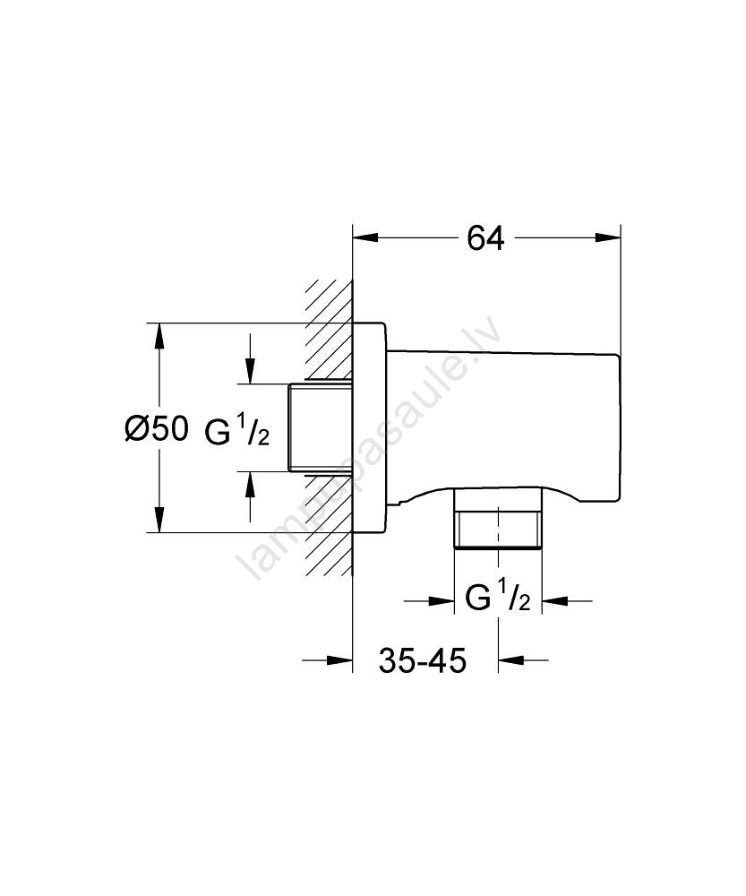 • Sienas elkoņsavienojums DN 15 nodrošina uzticamu rokas dušas pieslēgumu.