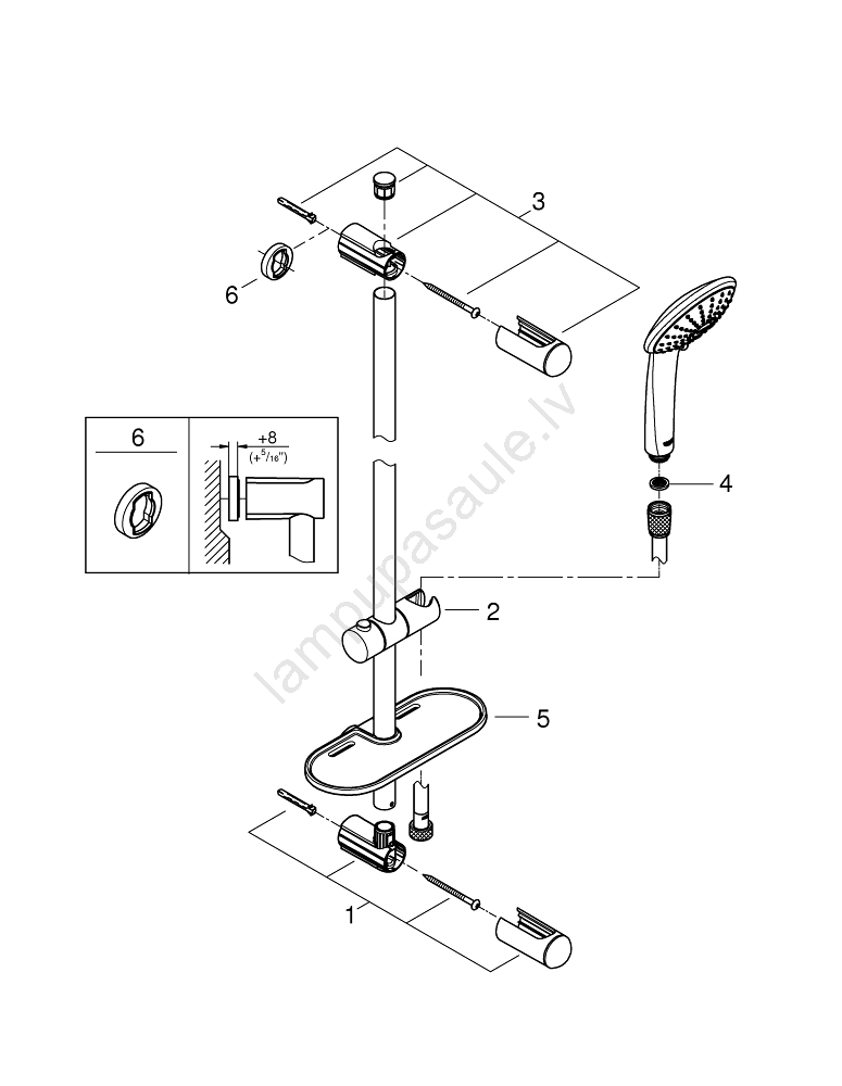 • Dušas stienis 900 mm garumā ērtai augstuma regulēšanai.