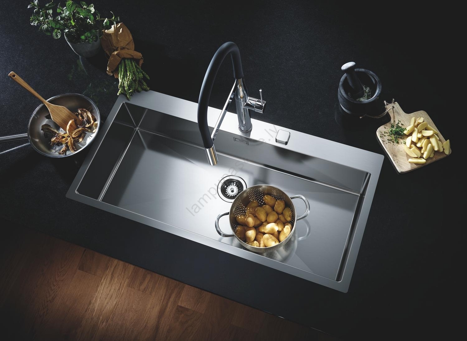 • Profesionāla duša ar elastīgu, higiēnisku GROHFlexx virtuves šļūteni no santoprēna.