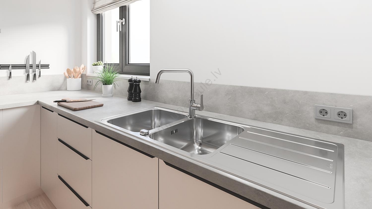 • Elastīga savienošanas šļūtene 3/8" ērtai pieslēgšanai pie ūdensapgādes sistēmas.