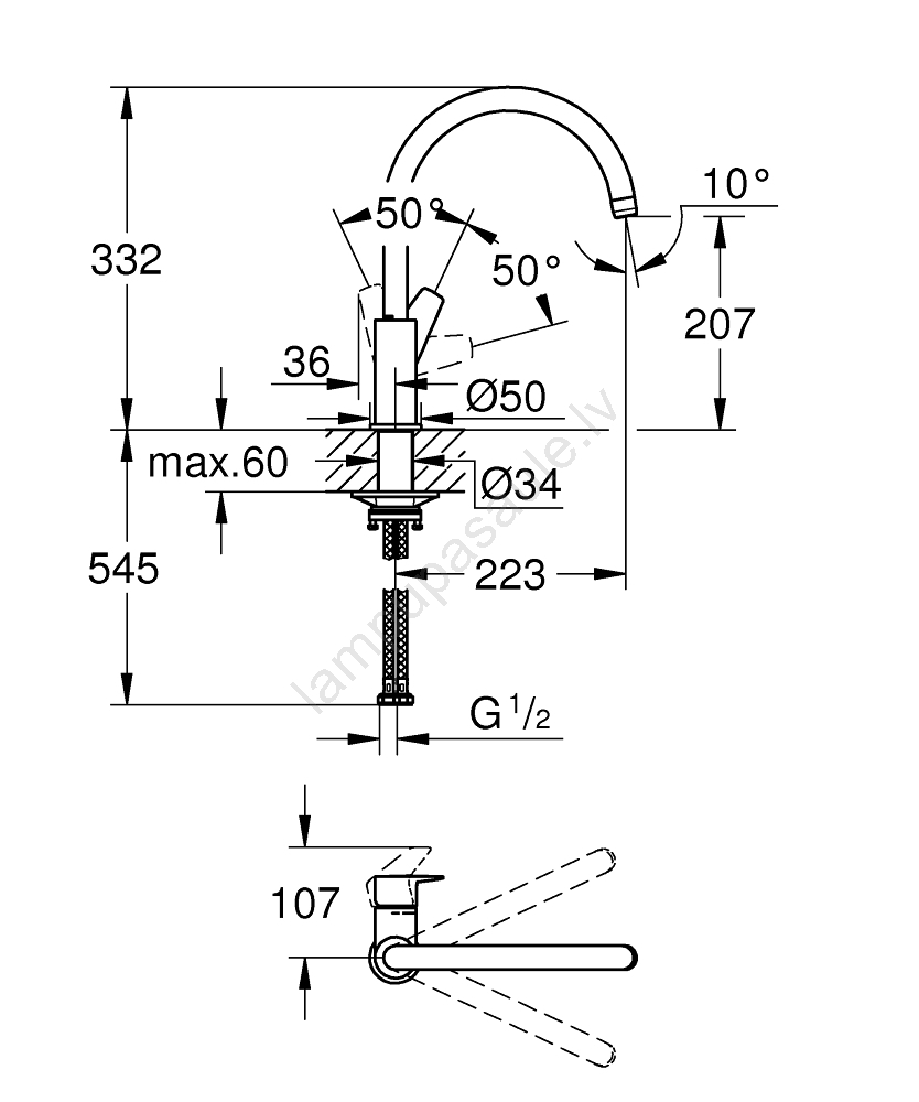 • Pagriežama cauruļveida iztece ar aeratoru ērtai lietošanai un ūdens taupīšanai.