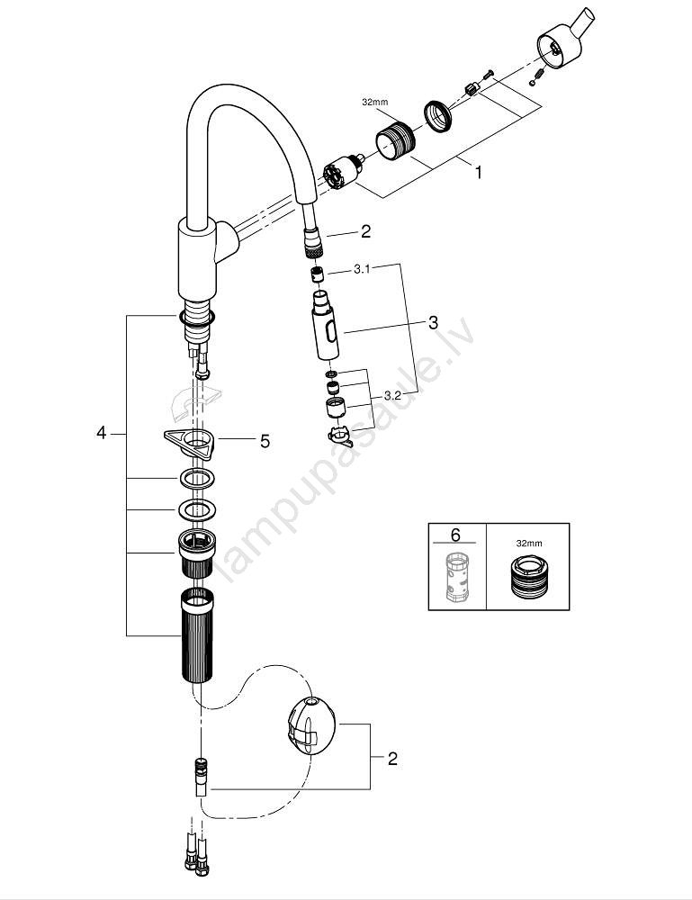 • GROHE EasyDock tehnoloģija nodrošina vieglu ievilkšanu un gludu izvelkamās dušas atgriešanos sākotnējā pozīcijā.