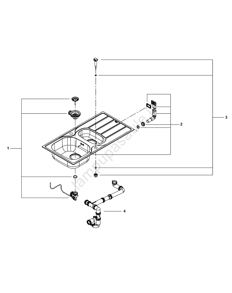 • Komplektā iekļauta automātiska notekas sistēma ar pagriezējamu rokturi, sietiņš netīrumiem un montāžas komplekts.