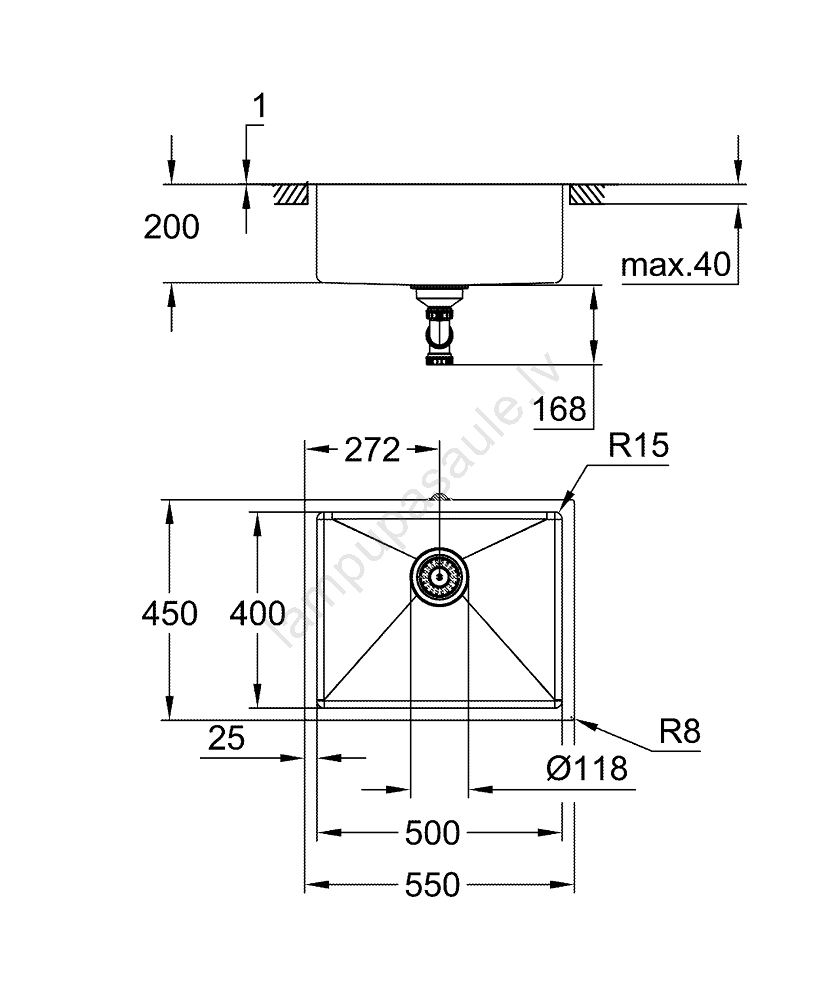• Izlietnes izmēri 550 x 450 mm un dziļā bļoda 500 x 400 x 200 mm ērtai darbībai.