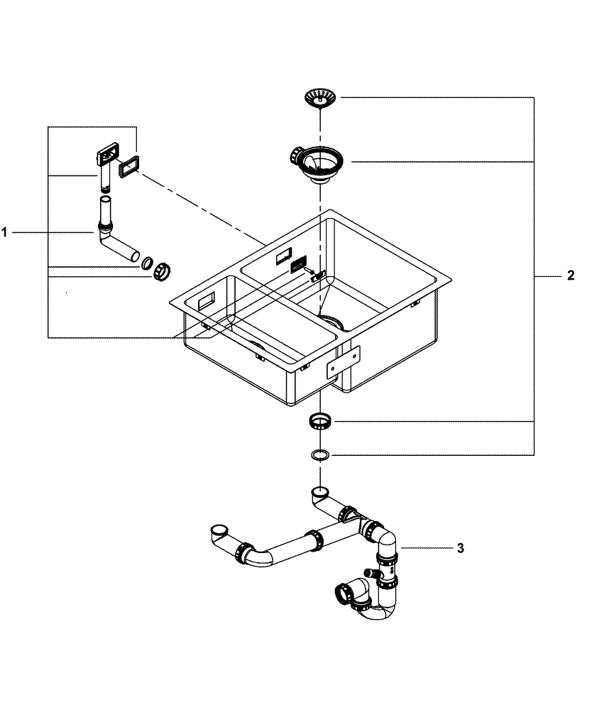 • Komplektā iekļauts notekas komplekts, notekas grozs ar sietiņu un montāžas komplekts.