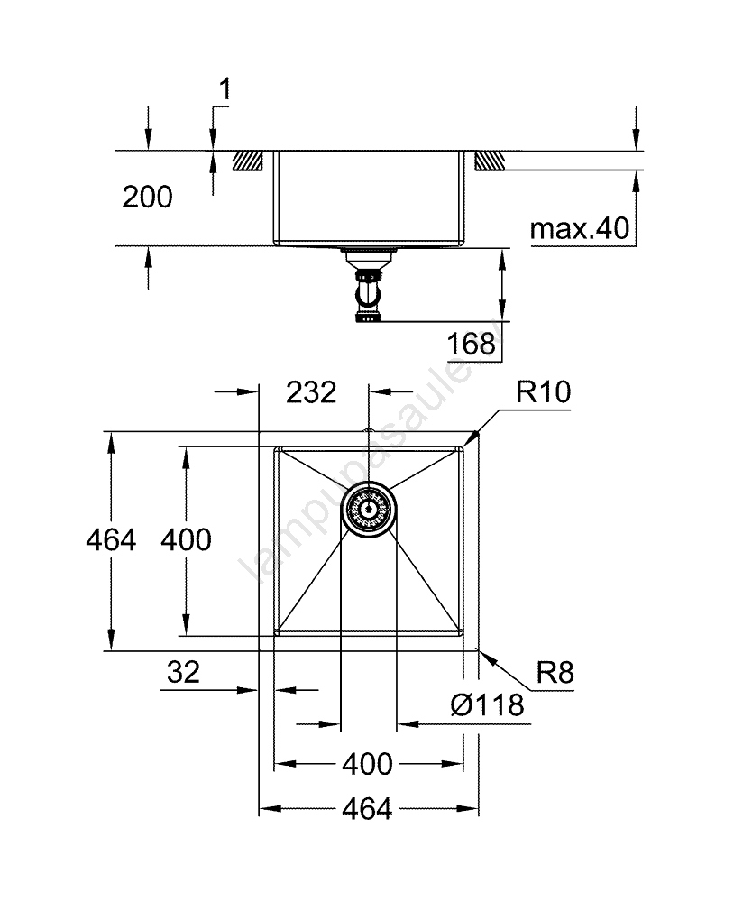GROHE 31578SD1 - izlietne K700 464 x 464 x 200, no nerūsējošā tērauda | Lampupasaule