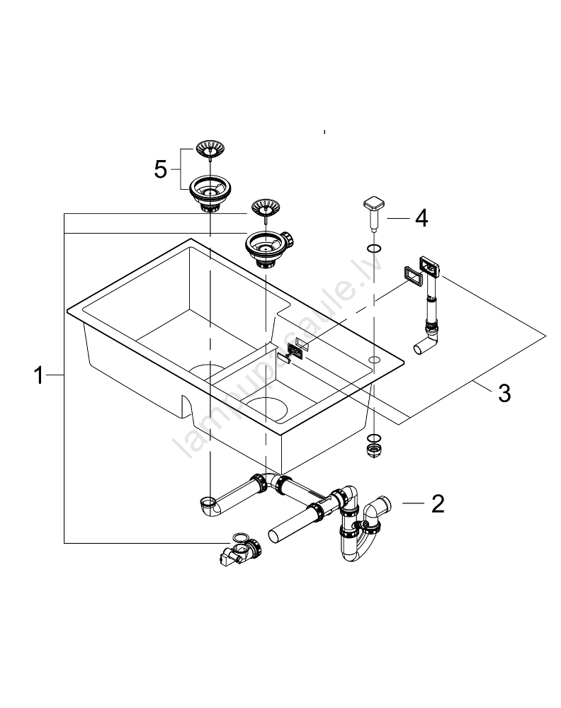 • Divkameru kompozīta izlietne GROHE K500 ar elegantu, minimālistisku dizainu.