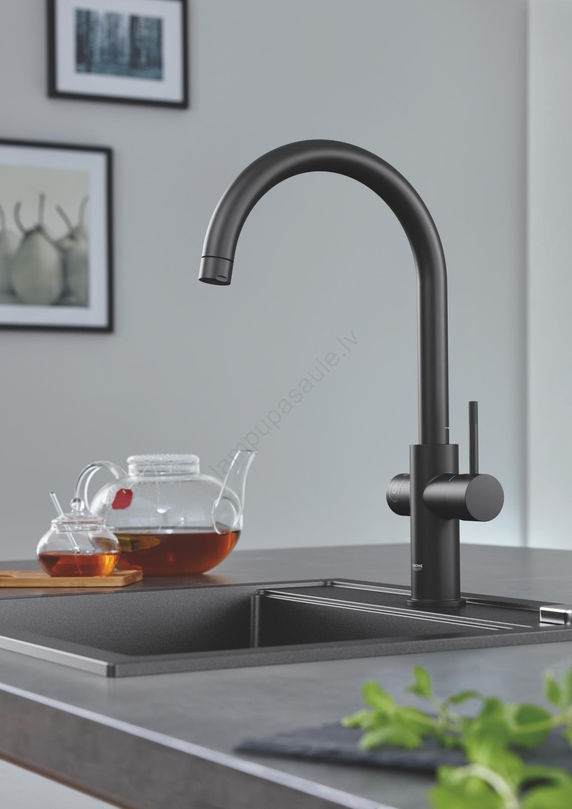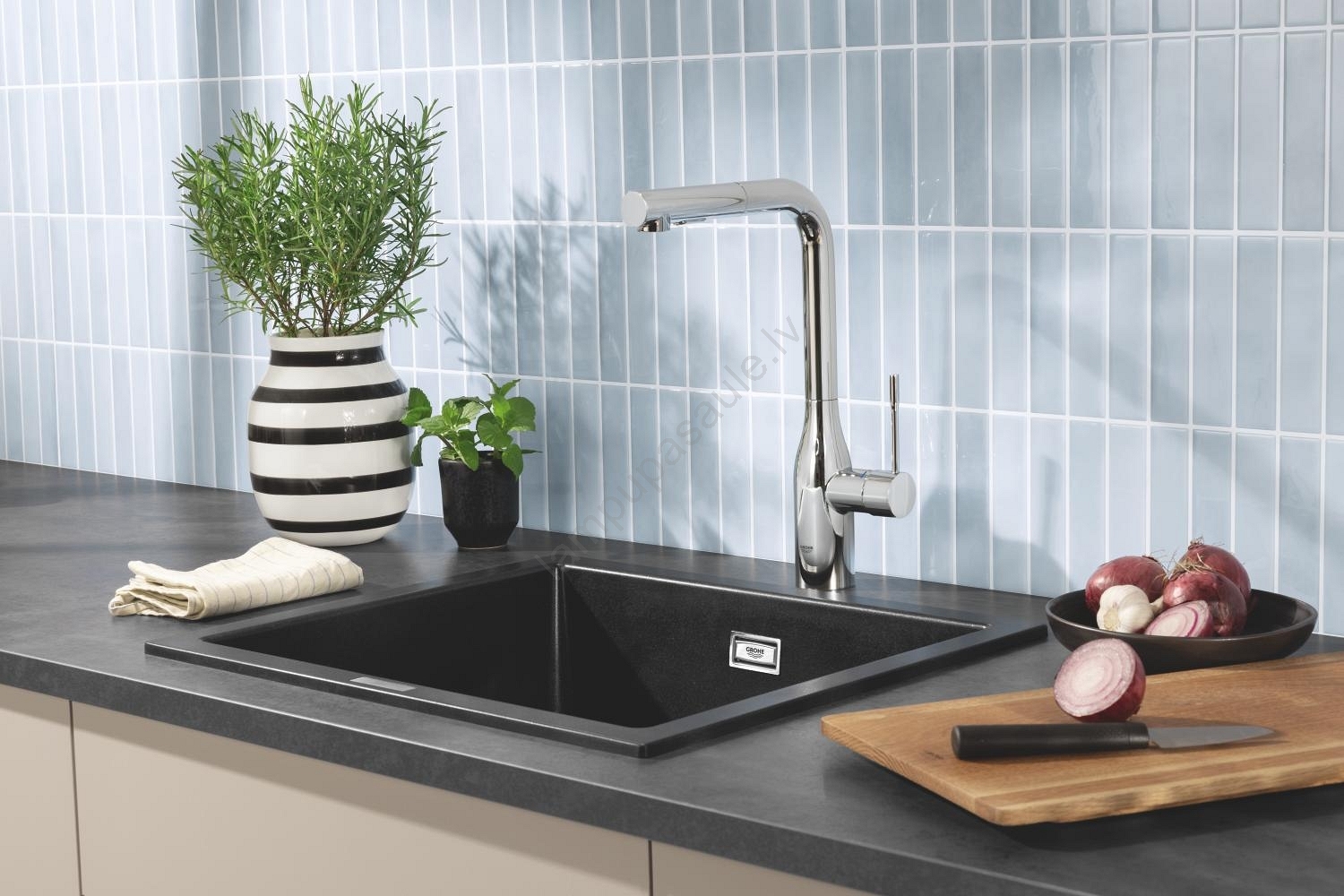 • GROHE K700 kompozīta izlietne elegantā Granite Black apdarē.