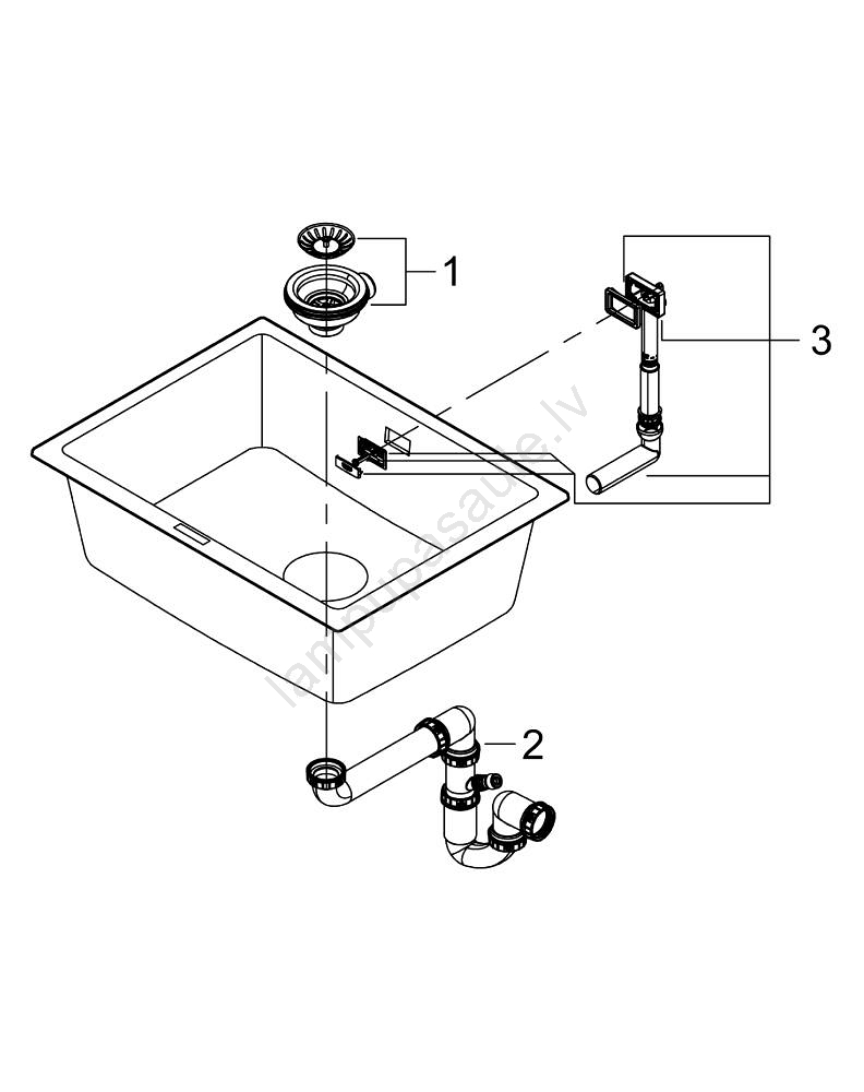 • Notekas atvere Ø 3,5" (90 mm) ar sietiņu pret netīrumiem.