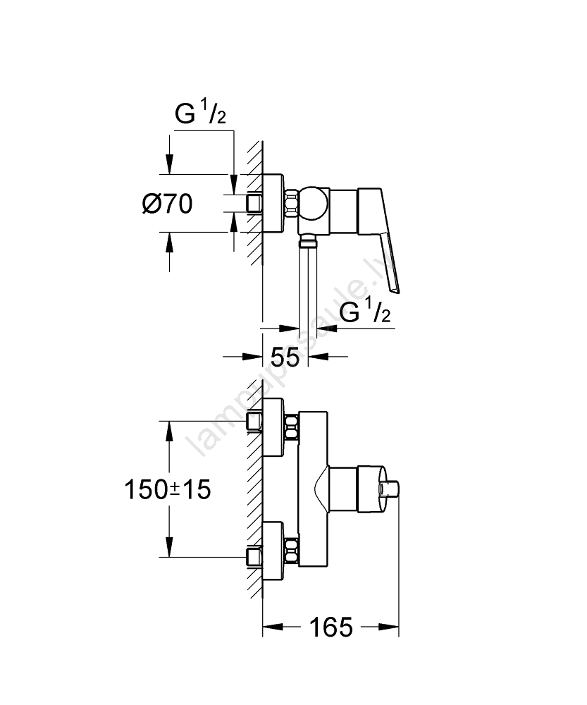 • Sienas dušas jaucējkrāns ar sviru, vieglai uzstādīšanai.