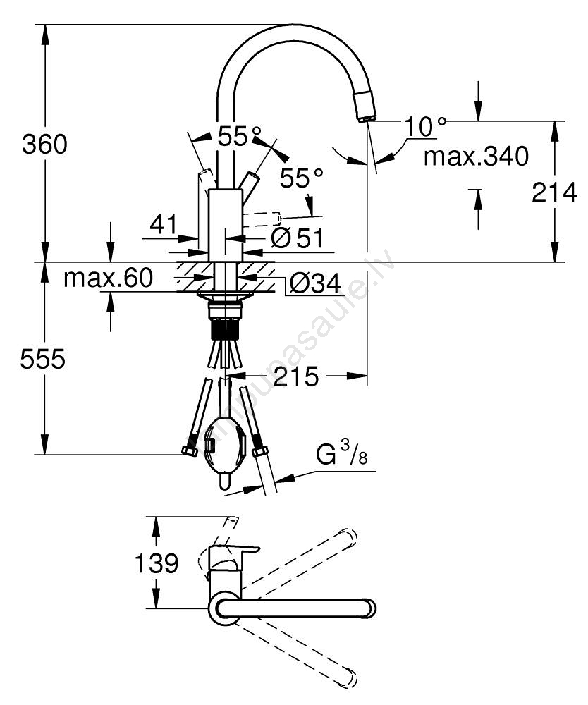 • Grozāma izteces caurule ar 360° pagriezienu maksimālai lietošanas elastībai.