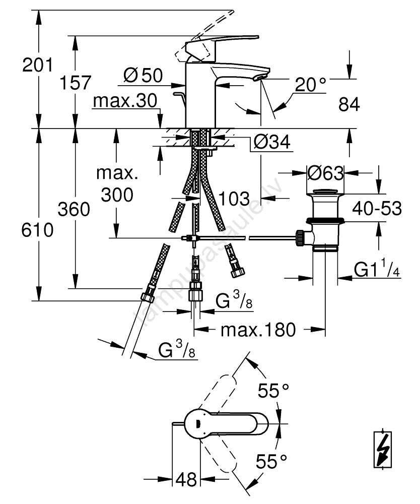 • GROHE FastFixation ātrās montāžas sistēma ar centrālo palīglīdzekli ātrai un precīzai uzstādīšanai.