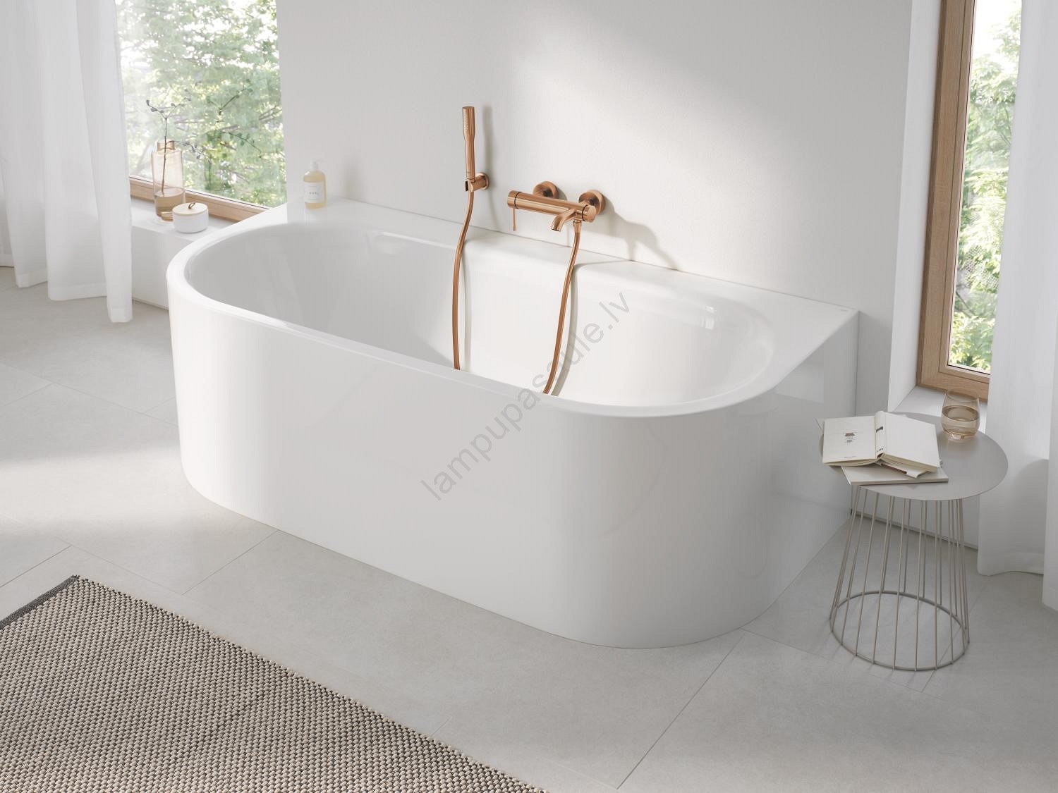 • Sienas uzstādāms sviras vannas jaucējkrāns ar elegantu dizainu un Brushed Warm Sunset apdari.