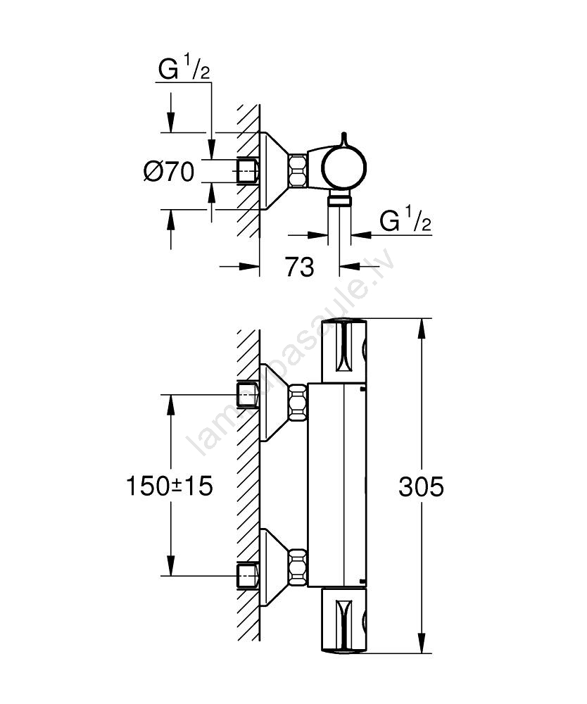 • Sienas termostatiskais dušas jaucējkrāns ērtai uzstādīšanai.