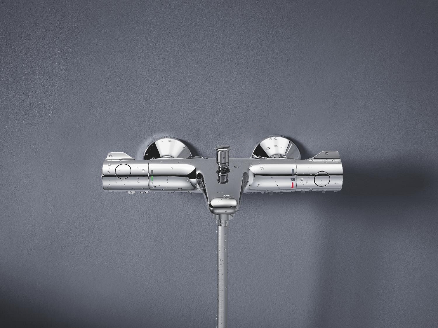 • Sienas termostatisks vannas jaucējs ar modernu dizainu.