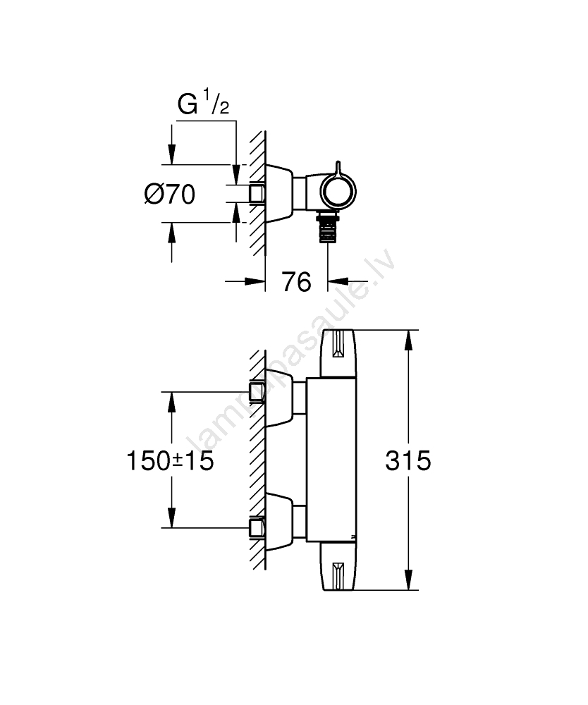 • Sienas termostatisks medicīnisks jaucējkrāns, viegli uzstādāms.