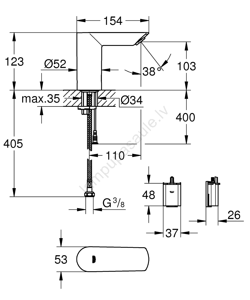 GROHE 36452000 - infrasarkanais elektroniskais izlietnes jaucējkrāns BAU COSMOPOLITAN E hroms | Lamp