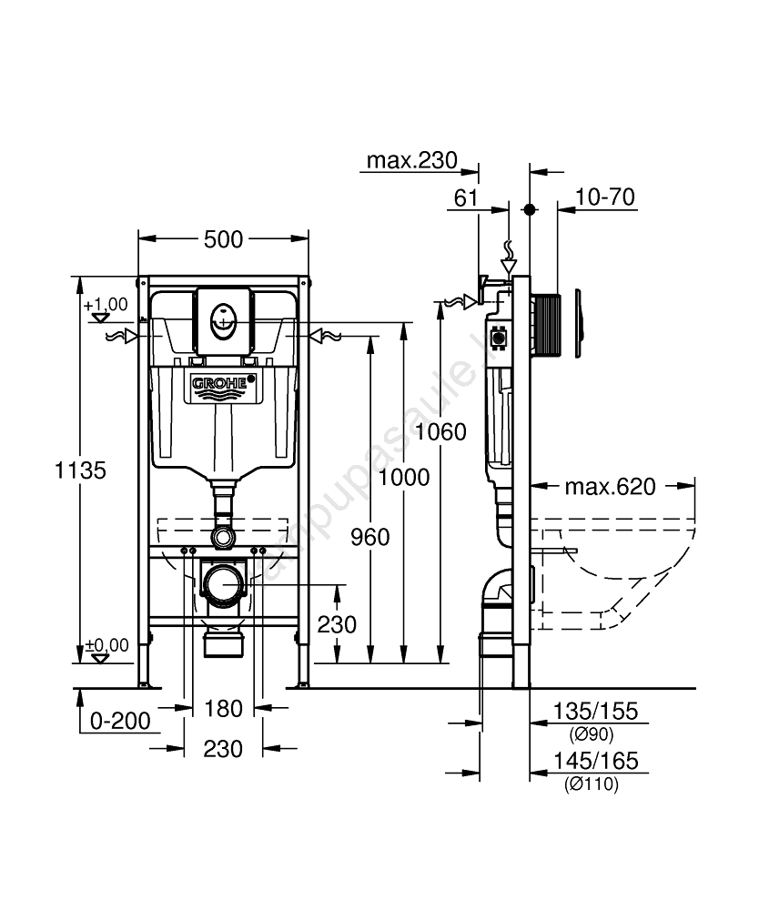 • GROHE Rapid SL uzstādīšanas sistēma pakaramajam WC ar augstumu 1,13 m.