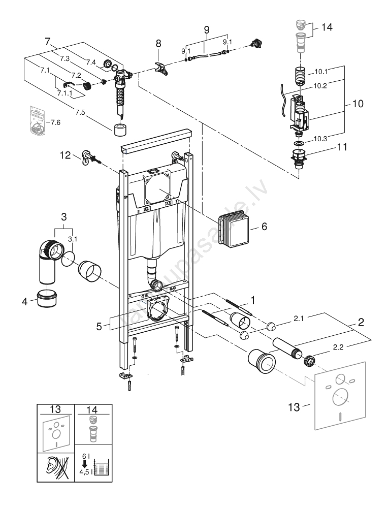 • Ietver 2 WC stiprinājumus un montāžas materiālu keramikas drošai piestiprināšanai.