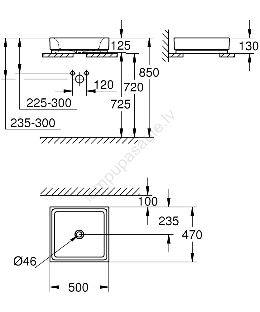 • Izmēri 500 × 470 mm ideāli dažādām vannasistabas telpām.