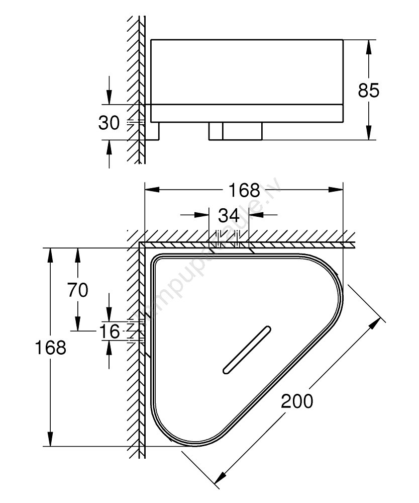 • Izmēri: platums 168 mm, augstums 85 mm, dziļums 168 mm.